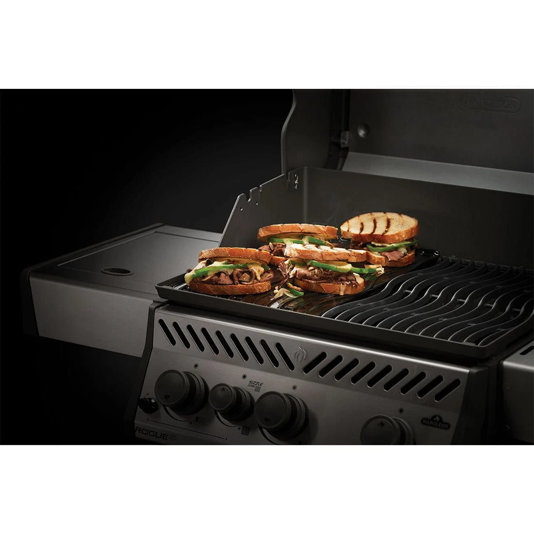 Napoleon® Gusseisen-Wendeplatte mit einer glatten Seite und einer Seite mit gewelltem Profil. Passend für Rogue 425, Rogue XT 425, Rogue XT 525 und die Rogue SE-Modelle. Die neue Porzellan-Emaillierung schützt die Platte vor Korrosion und besitzt dadurch auch eine bessere Antihaft-Beschichtung. Ideal für kleinteiliges Grillgut, Spiegeleier, Burgerpatties, Meeresfrüchte etc. (45,1 cm x 29,5 cm).