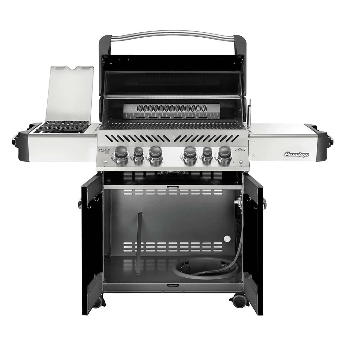 Der Napoleon® Prestige® 500 vereint unter seiner schicken und platzsparenden LIFT EASE™ Rollhaube alles, was sich ein Grillmeister vorstellen kann.