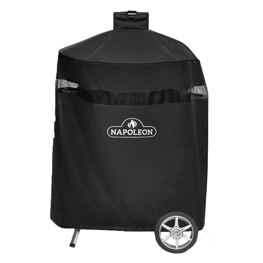 Napoleon® Haube mit langlebigem, wasserabweisenden Gewebe. Bricht nicht und bietet das ganze Jahr hindurch Vollwetterschutz. Ausbleichen wird durch einen speziellen UV-Schutz vermieden. Verstellbare Riemen mit Schnallen an den Seiten für eine genaue Passform. Vermeidung von Schimmel und Aufblasen durch Belüftungsöffnungen. Passend für den Napoleon® Kugelgrill NK18K-LEG.