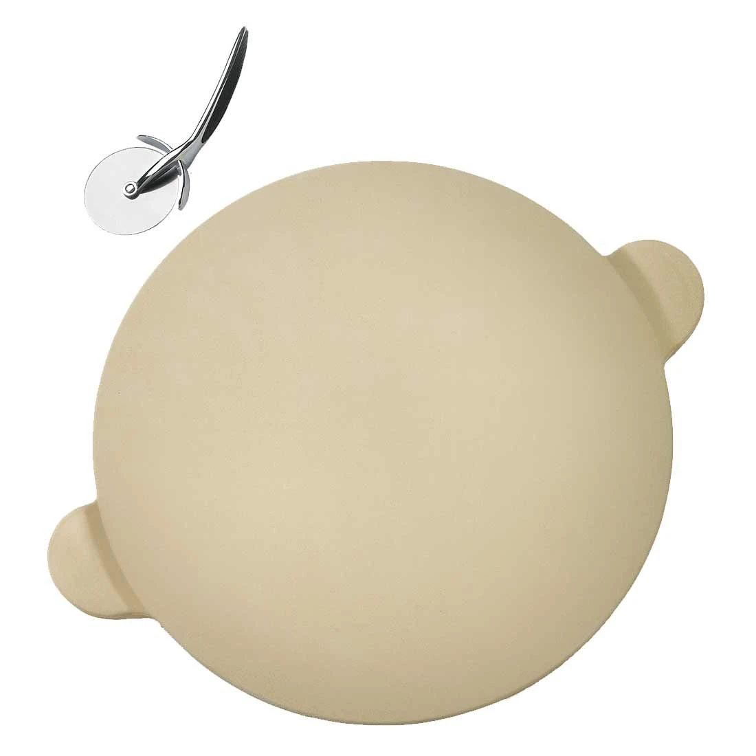 Napoleon® PRO Pizza-Stein mit 38 cm Durchmesser und seitlichen Griffen. Inklusive Pizza-Schneider. Ideal für Pizza, Brot etc. Wichtig: Pizza-Stein langsam erhitzen (am besten zusammen mit dem Grill aufheizen).
