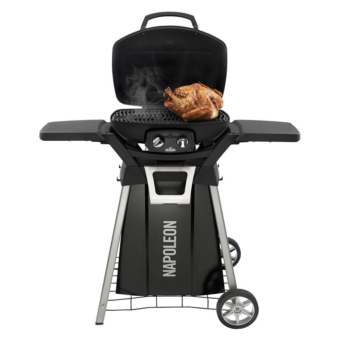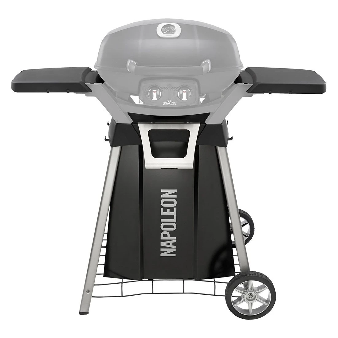 Der Napoleon® TravelQ™ Standwagen ist die perfekte Ergänzung zum mobilen Gasgrill TravelQ™ PRO285. Dank der langlebigen Konstruktion aus Aluguss und pulverbeschichtetem Stahl mit Edelstahl-Akzenten trotzt er den Elementen und Korrosion. Die Gasflasche findet hinter der stylischen Gasflaschenverkleidung ihren Platz. Zusätzliche Aufbewahrungsmöglichkeiten bieten 4 seitlich angebrachte Haken.