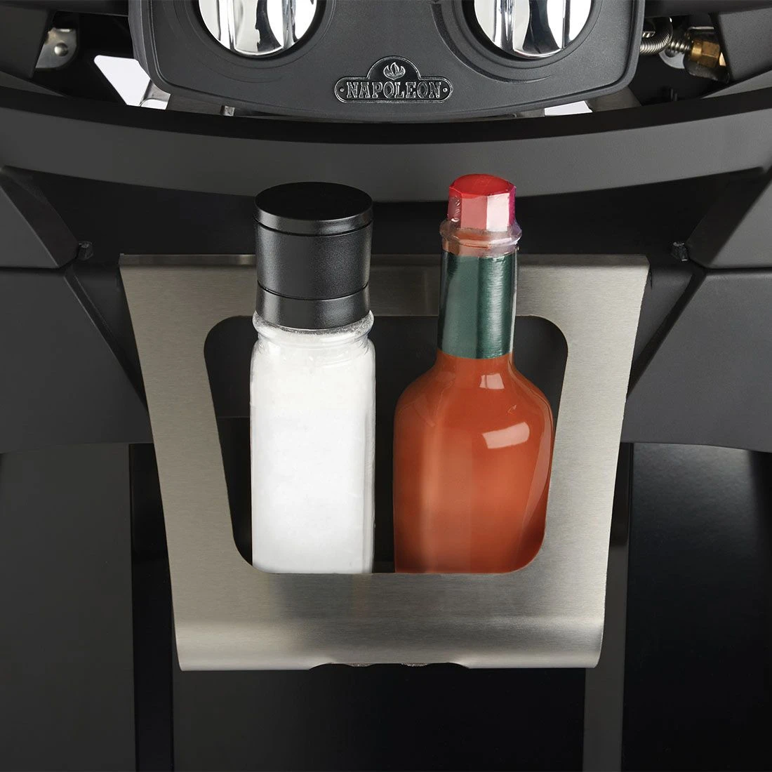 Der gesamte Wagen ist für den schnellen und einfachen Einsatz konstruiert. Ist Platz rar, werden die Seitenablagen einfach ausgehängt. Der Wagen selbst bietet viel Stauraum: integrierte Handtuchhalter, Besteckhaken und Halterungen für die Grillroste. Das Edelstahl-Gewürzregal besitzt zusätzlich einen integrierten, komfortablen Flaschenöffner.