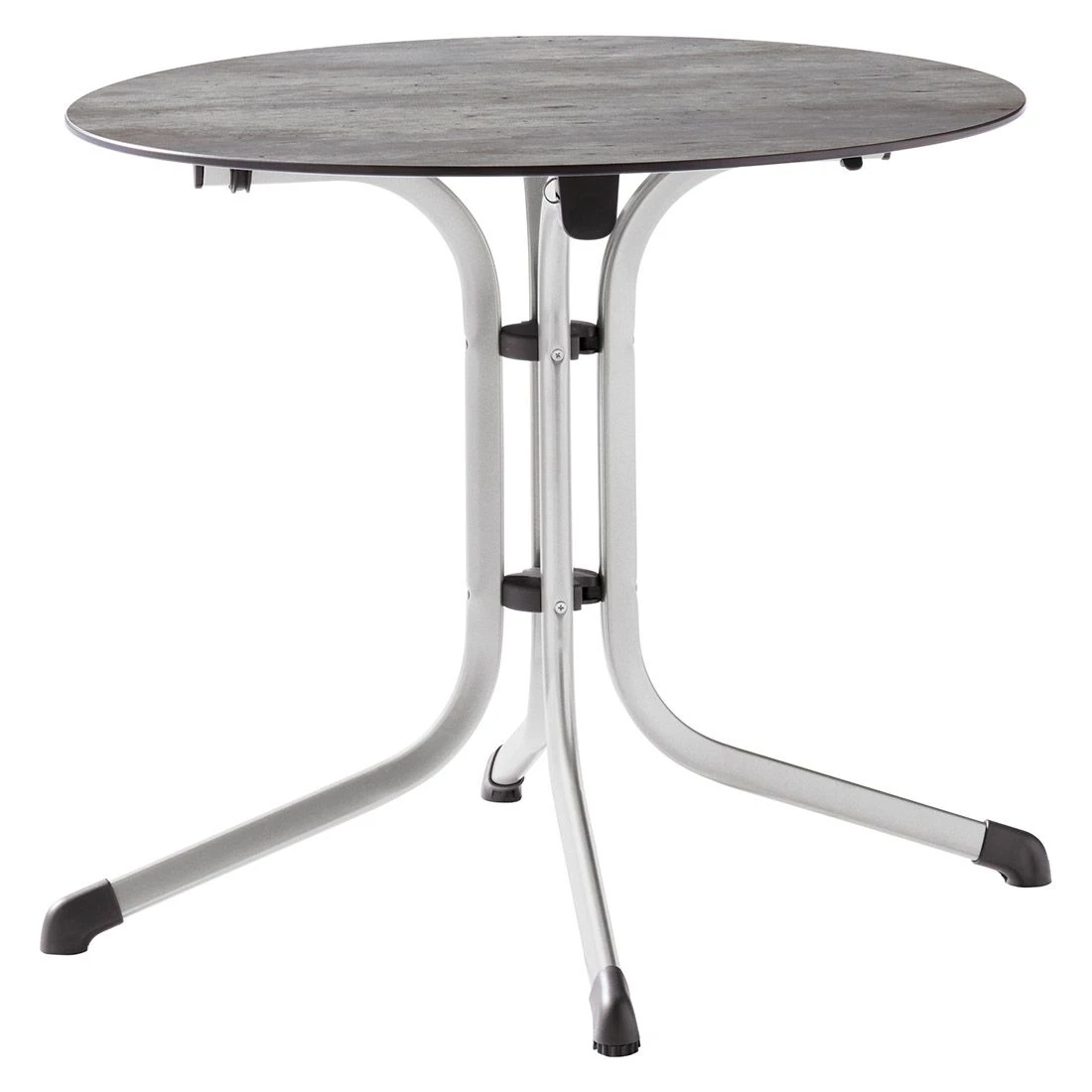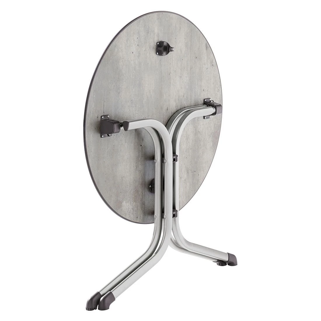 Seine Stabilität erhält der Tisch durch das robuste Tischgestell aus Stahl. Farblich ist das Gestell in Graphit gehalten. Die Polytec-Tischplatte ist nicht nur ein optischer Hingucker, sondern besitzt auch beste Materialeigenschaften für Draußen. Die Platte ist wetter-, kälte- und kratzfest und damit der perfekte Begleiter für Ihren Outdoor-Bereich. Farblich ist die Tischplatte in einem schönen Beton Hell gehalten. Die Form des Klapptisches ist rund.