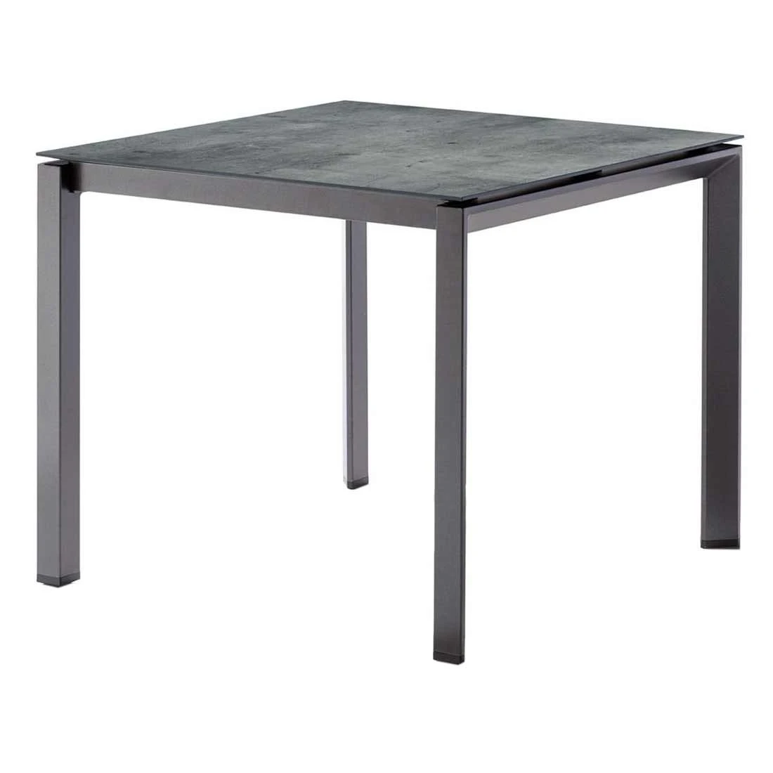 Mit seinem Gestell-Material Aluminium zählt der Gartentisch zu den modernen Tischmodellen, die sich im Garten ohne Aufwand aufstellen und bewegen lassen. Klassisch aus vier Tischbeinen besteht das Gestell des Tisches. Die robuste Tischplatte aus Polytec überzeugt mit ihren Materialeigenschaften. Die Platte ist wetter-, kälte- und kratzfest und damit der perfekte Begleiter für Ihren Outdoor-Bereich. Farblich ist die Platte in Zement Graphit gehalten. Die Form des Gartentisches ist kompakt quadratisch gehalten.