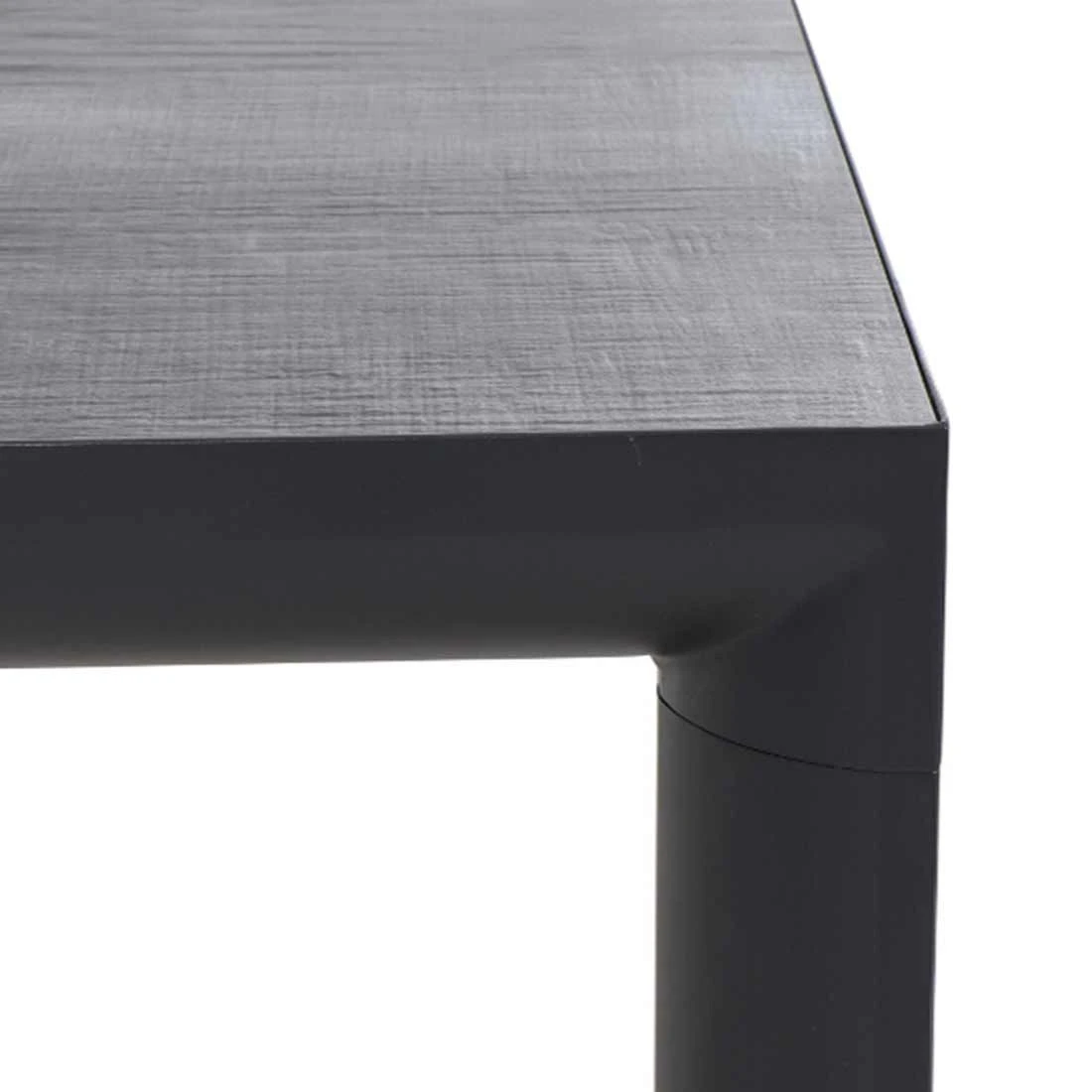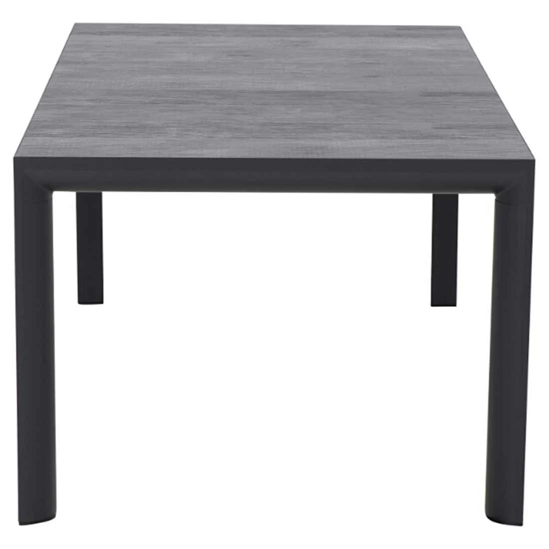 Das Gestell des leichten Tisches ist aus Aluminium gefertigt. Für die Tischplatte wird das Naturmaterial Keramik verwendet. Keramikplatten sind stoß-, schlag- und schnittbeständig und zählen somit zu den stabilsten Tischplatten auf dem Gartentisch-Markt. Farblich ist die Tischplatte in einem schönen Grey Wood gehalten.