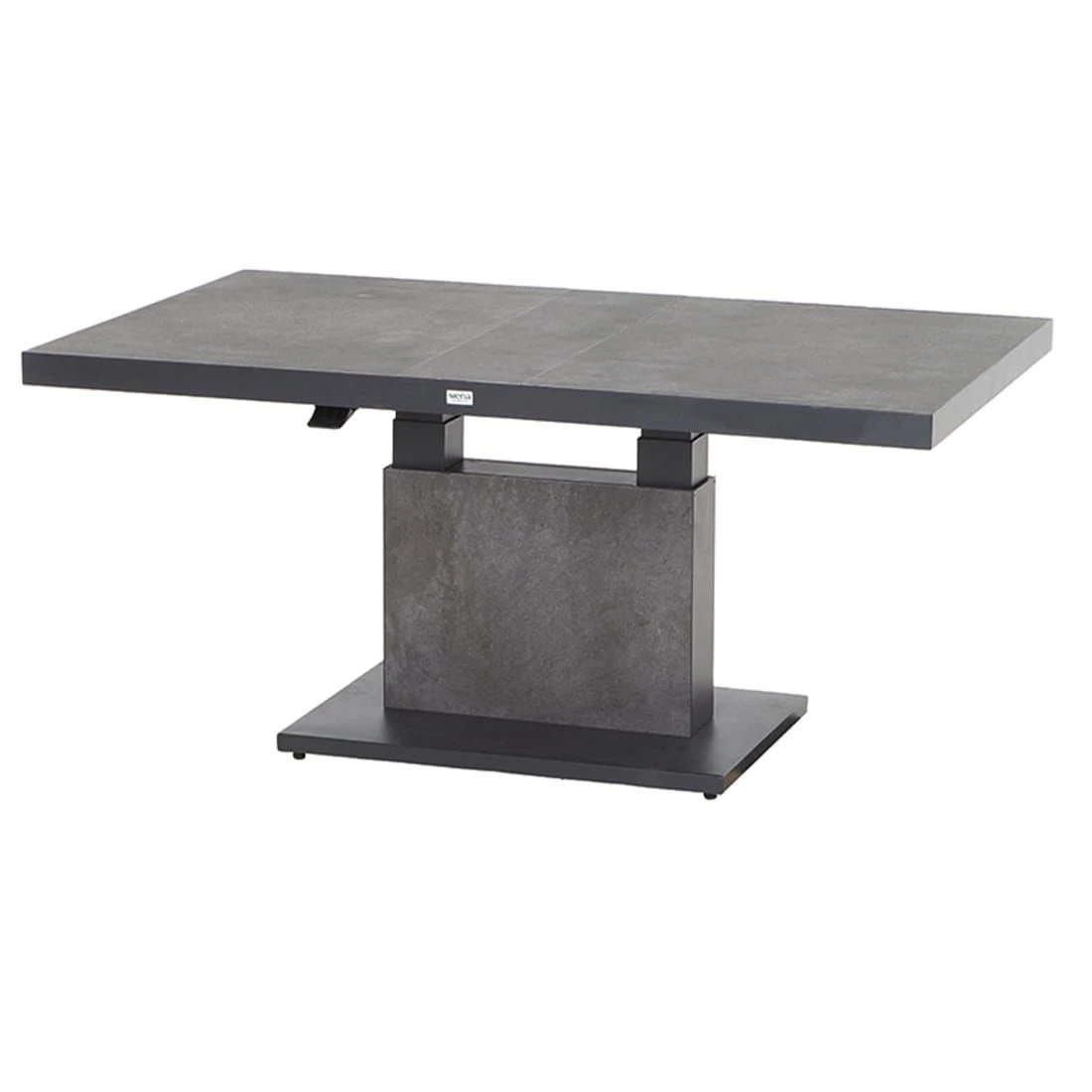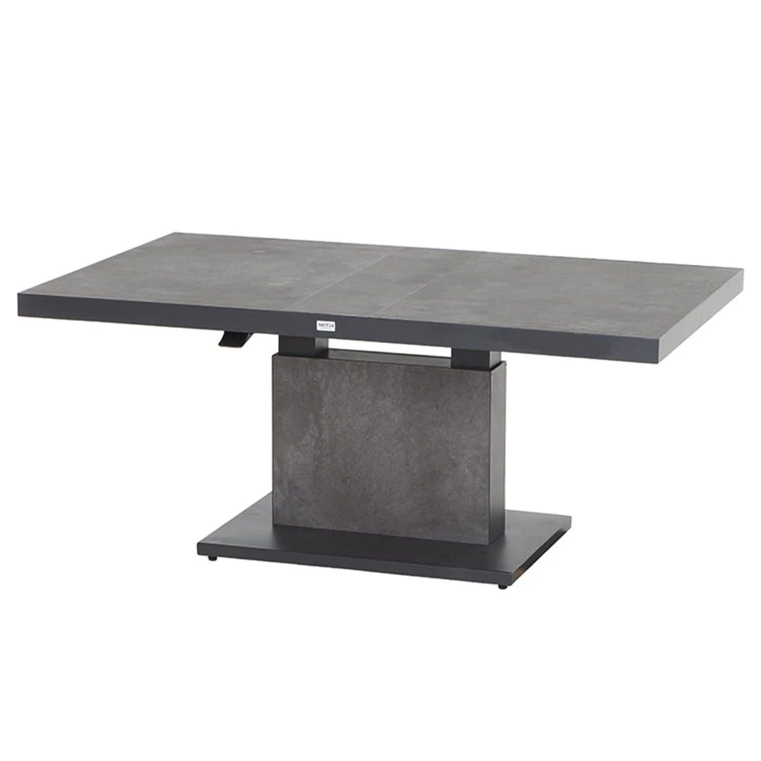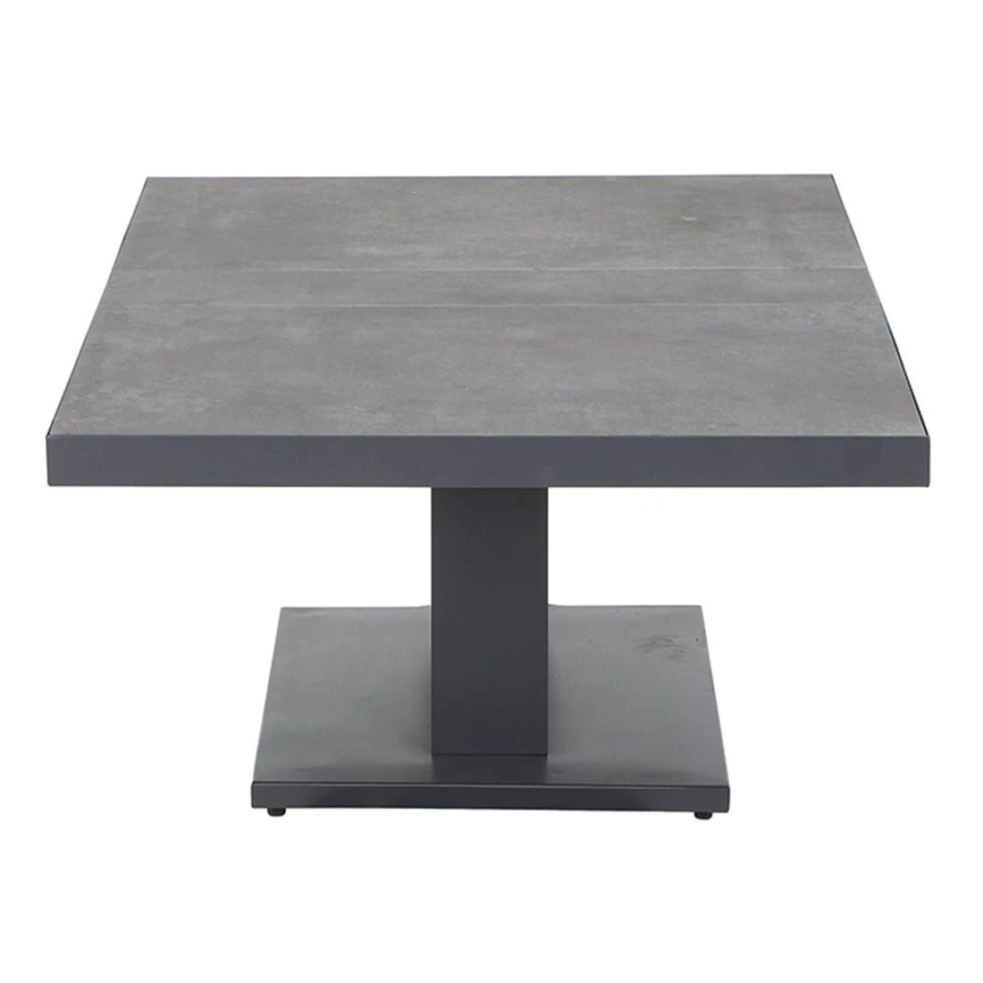 Als Material des Gestells hat der Hersteller qualitativ hochwertiges Aluminium gewählt. Die robuste Tischplatte aus Keramik ist nicht so schwergewichtig wie Naturstein, sorgt allerdings ebenso für windsicheren Halt im heimischen Garten. Für ein perfekt stimmiges Gesamtbild sorgt die einheitliche Farbgebung in stilvollem Anthrazit.