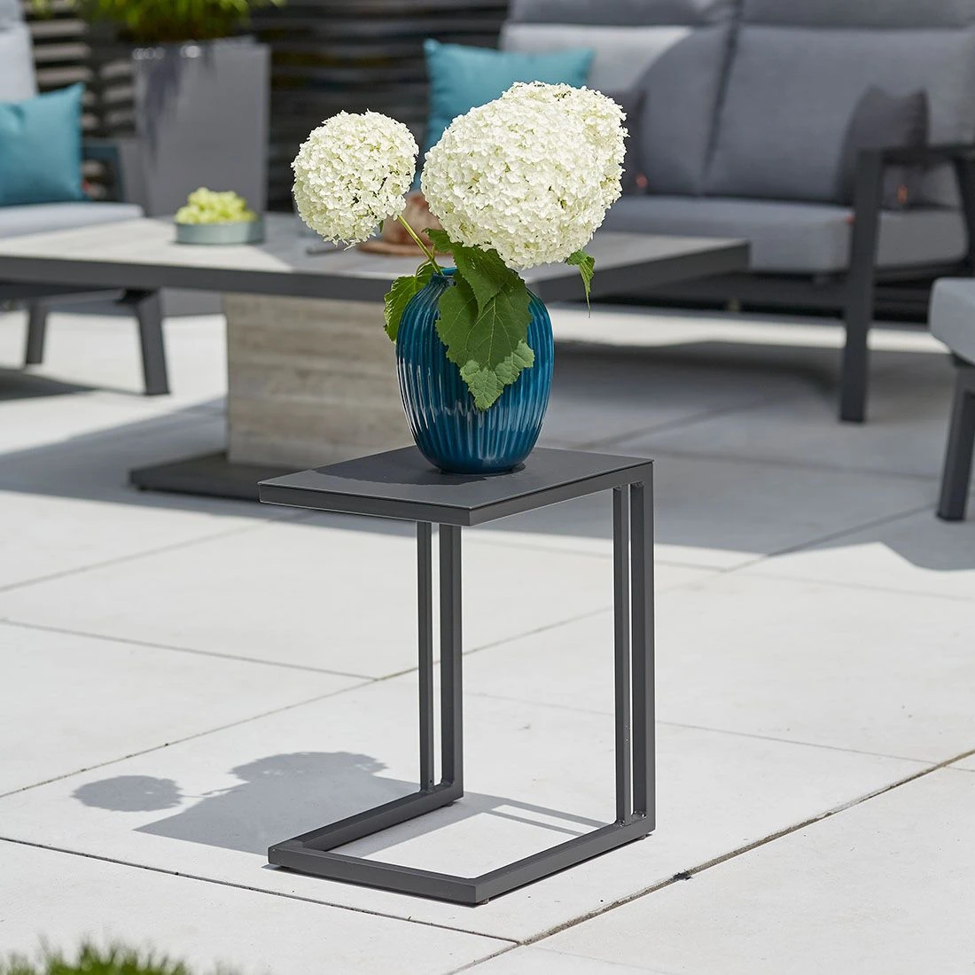 Seine handliche Form macht den Beistelltisch Ramo von Siena Garden zu einer hervorragenden Ergänzung eines Loungesets im Garten.