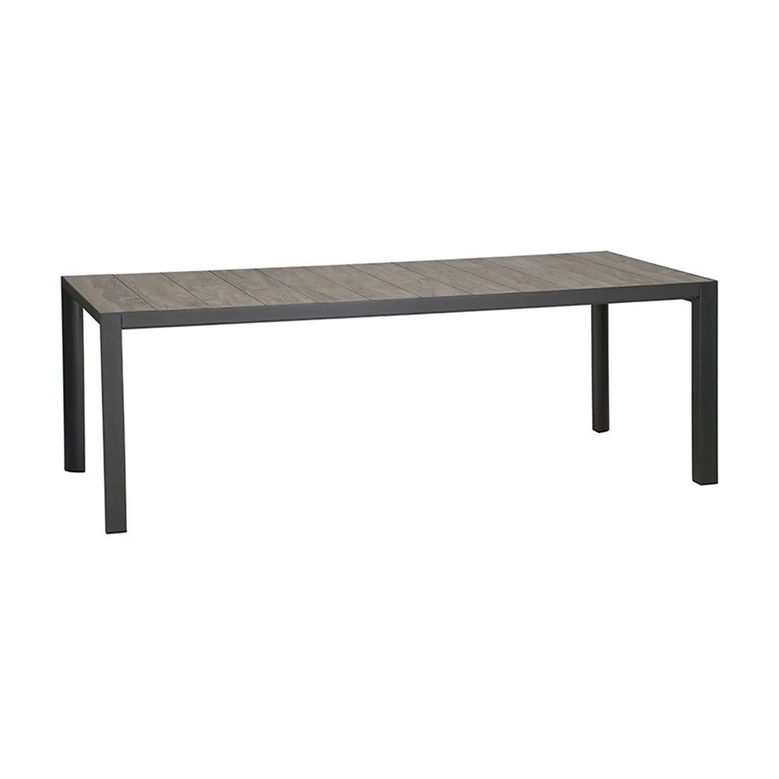 Mit seinem Gestell-Material Aluminium zählt der Gartentisch Silva zu den modernen Tischmodellen, die sich im Garten und auf der Terrasse ohne Aufwand aufstellen und bewegen lassen. Klassisch aus vier Tischbeinen besteht das Gestell des Tisches. Die Tischplatte ist aus edlem Keramik gefertigt. Im Gegensatz zu vielen anderen Tischplattenmaterialien sind Keramikplatten äußerst kälte- und hitzebeständig und zählen somit zu den robustesten Tischplatten auf dem Markt. Farblich ist die Platte in Washed Grey gehalten. Die rechteckige Form ermöglicht es Ihnen, den Gartentisch in Ecken und an Häuserwänden platzsparend einzusetzen.