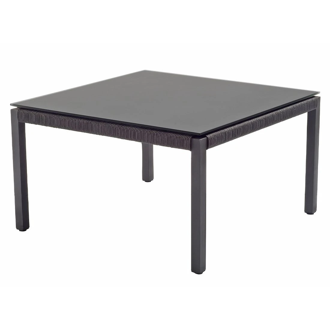 Aufgrund seines Gestells aus Aluminium zählt der Beistelltisch Club zu den modernen Tischmodellen, die sich im Garten ohne Aufwand aufstellen und bewegen lassen. Als klassische Design-Komponente fungiert das geradlinige Vierfußgestell. Keramik ist das Material, das für die Tischplatte gewählt wird. Das robuste Material ist nicht so schwergewichtig wie Naturstein, sorgt allerdings ebenso für windsicheren Halt im Garten oder auf der Terrasse. Farblich ist die Platte in Concrete Coal gehalten. Der Beistelltisch ist in seinem Design klassisch quadratisch gehalten.