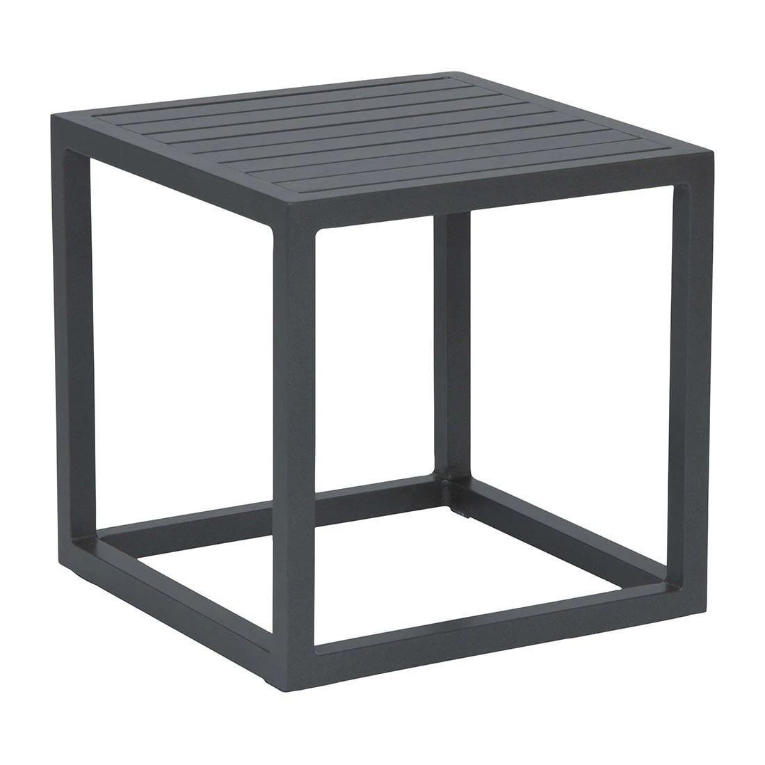 Sowohl die Tischplatte als auch das Gestell sind aus Aluminium gefertigt. Farblich sind Gestell und Tischplatte einheitlich gestaltet und begeistern in Anthrazit. Das Tischgestell in Säulenform ist nicht nur ein wahrer Eyecatcher, sondern auch ein Garant für ausreichend große Beinfreiheit. Der Beistelltisch ist klassisch quadratisch gehalten.