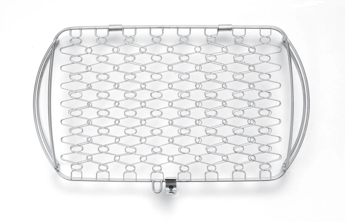 Fisch- und Gemüsehalter Edelstahl groß rechteckig – für alle Weber Gasgrill ab Q 300 und Holzkohlgrills 57 cm geeignet.