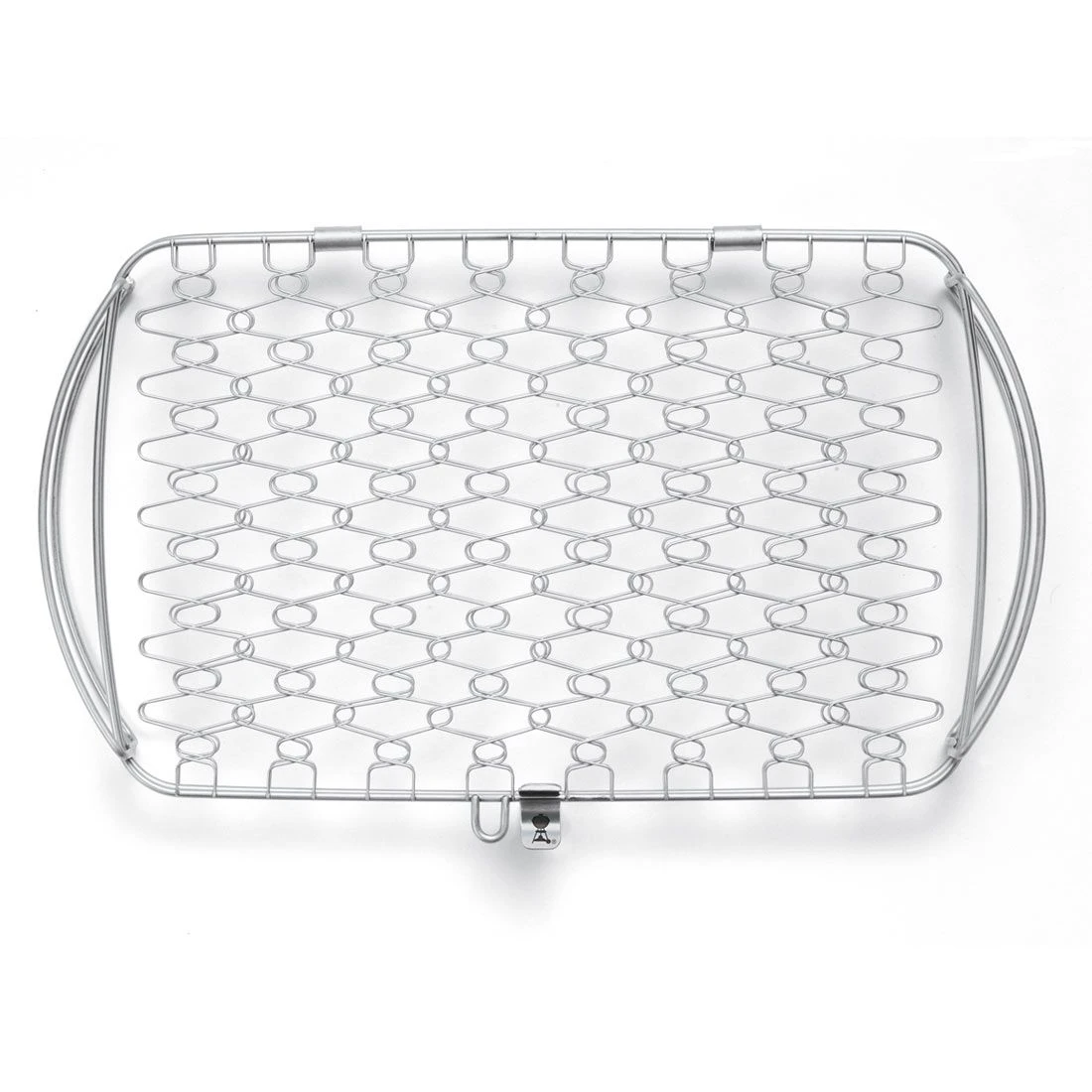 Fisch- und Gemüsehalter Edelstahl klein rechteckig – für alle Weber Gasgrill ab Q 100 und Holzkohlgrills 47 cm geeignet.