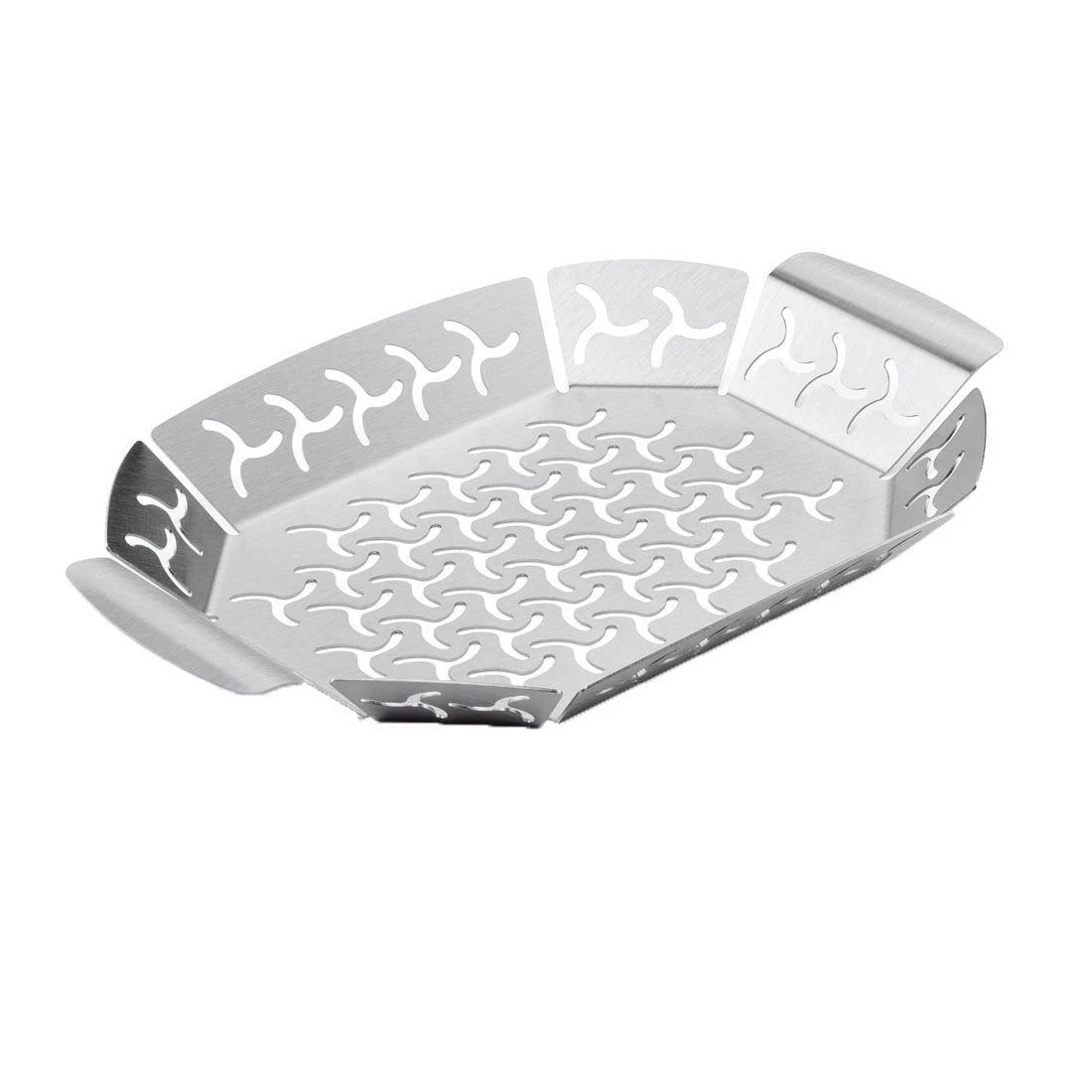 Weber’s kleiner Gemüsekorb in Edelstahl ermöglicht eine aromatische Zubereitung von gestiftetem oder gewürfeltem Gemüse und kleineren Speisen.
